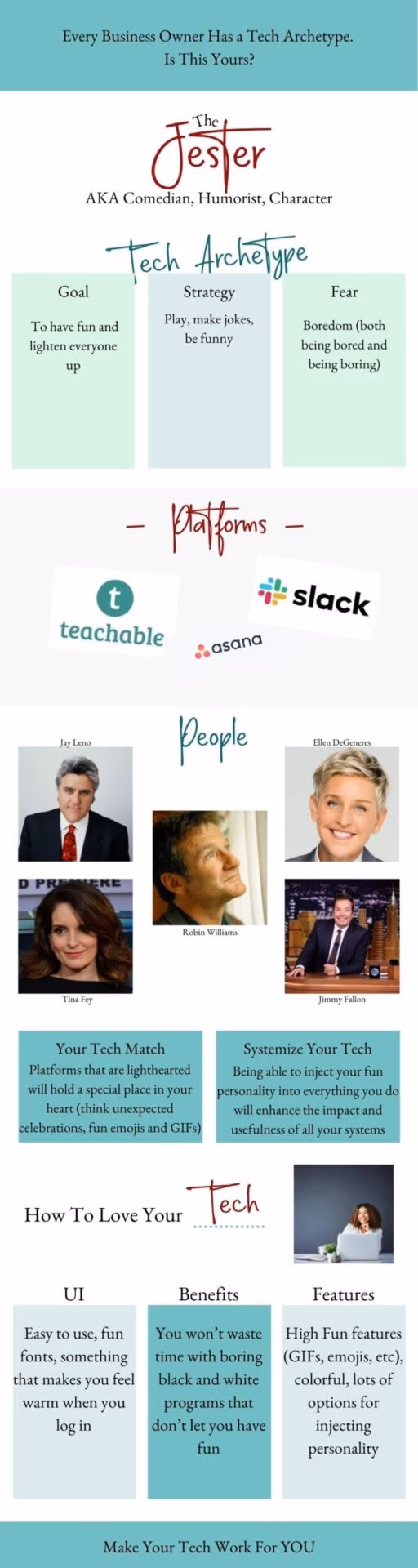 That's what the Tech Archetypes are. Your cheat sheet to choosing the technology that will work for you, your business, and your goals.